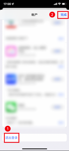 2、滑动该页面至底部,点击“退出登录”即可退出商店ID,再点击”完成”