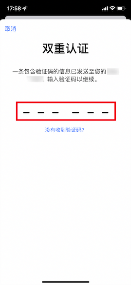 3、输入验证码,成功检验后,即登录成功Apple ID